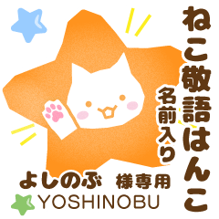 よしのぶ様用ねこの敬語はんこ挨拶[ヨシノブ/義誠/良信/慶信/昌展/由伸/忠伸/喜信/好信/慶喜/吉野生/芳延/佳信/能信/義宣/善信]お名前入り印鑑/猫判子ハンコ姓苗字なまえお名前入りスタンプ専用★アイシスデザイン株式会社 より発売