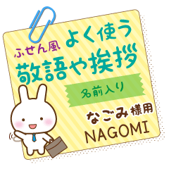 なごみ様用うさぎの丁寧敬語挨拶ふせん風[ナゴミ/和魅/和珠/和美/和京/和心/和未/和水/和実/七五三]兎名前入りフセン/兔姓苗字なまえ/仕事職場業務/ビジネス/サラリーマンお名前入りスタンプ専用★アイシスデザイン株式会社 より発売