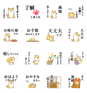 シニアの方が使いやすい「丁寧な言葉遣い」「ゆっくりアニメーション」「文字大きめ」の柴犬くんです。よく使う日常会話より、迷わず選べる16個を厳選して取り揃えました。