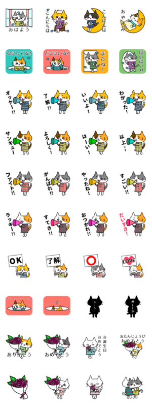 第四弾【ふくねこのまいにち】 日常で使える服を着たねこのスタンプ。 仲良しのともだち、家族、大好きなあのひとへ。 思わず使いたくなる?スタンプです! 黒文字版です。Shippo より発売