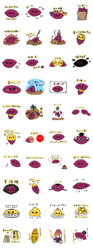 秋冬にピッタリな焼き芋(サツマイモ)のスタンプです。aiteruchan より発売