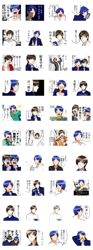 二人の男子高校生が描かれたスタンプ。冗談が通じそうなお友達と使ってください。めいな より発売