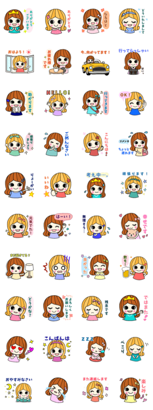 カーリーヘアの可愛い女の子。 レトロな雰囲気があって、大人でも使いやすいスタンプです。 絵文字もできました☆