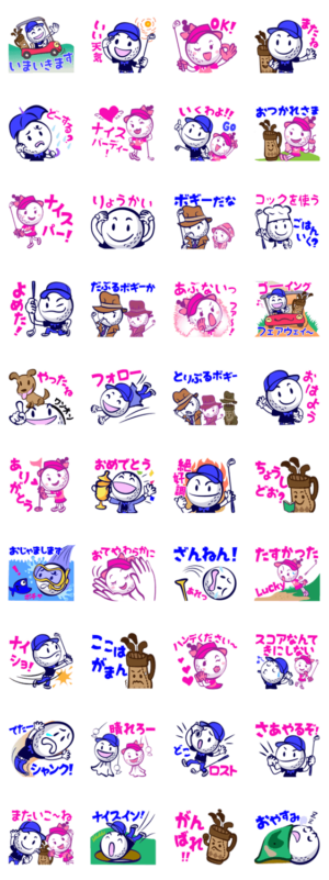 ゴルフボールのキャラが、ナイスショット!日常でも使える楽しいスタンプ。