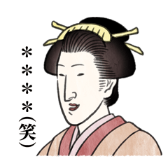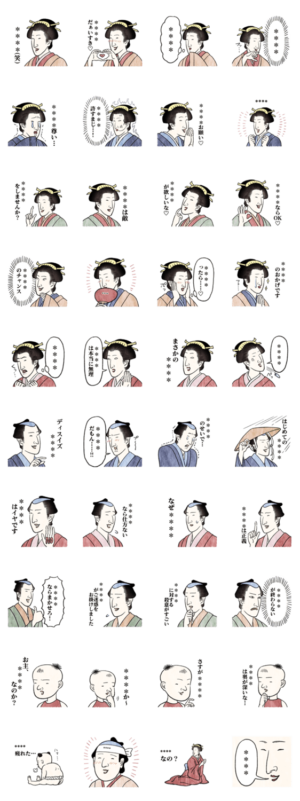 お茶目な浮世絵風スタンプ第二弾です。単語を入力できるカスタムスタンプです。※着物の合わせがまちまちになっているのは仕様です