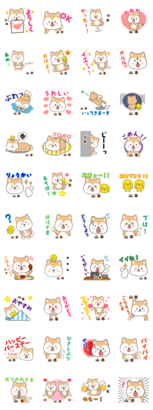 やまもと/山本様専用★毎日使える柴犬!日常会話編!お名前入りいぬスタンプ!友達や大人の毎日の挨拶言葉/家族恋人学生/姓苗字なまえ/しばけん&ひよこ/日本ケン/豆シバイヌお名前入りスタンプ専用★アイシスデザイン株式会社 より発売