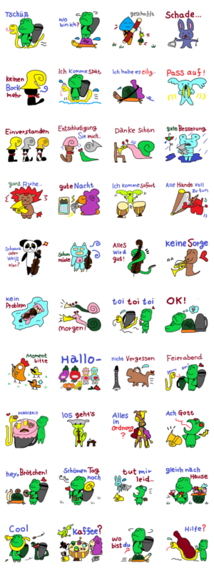 Frog Mofu is Tuba-player. A cute and Hateful sticker of Mofu and his friends. (German version)