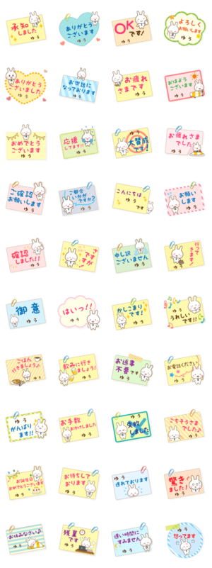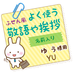 ゆう様用うさぎ丁寧敬語挨拶ふせん風[ユウ/勇/優/裕/有/悠人/友也/佑輝/湧実]スタンプ内容/感謝/有難う/お祝い/お誕生日おめでとう/ごめんなさい/承知しました/御意お名前入りスタンプ専用★アイシスデザイン株式会社 より発売