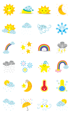 これらのかわいい天気絵文字で、天気がどうであるかを友人や家族に知らせましょう。YentyJap より発売