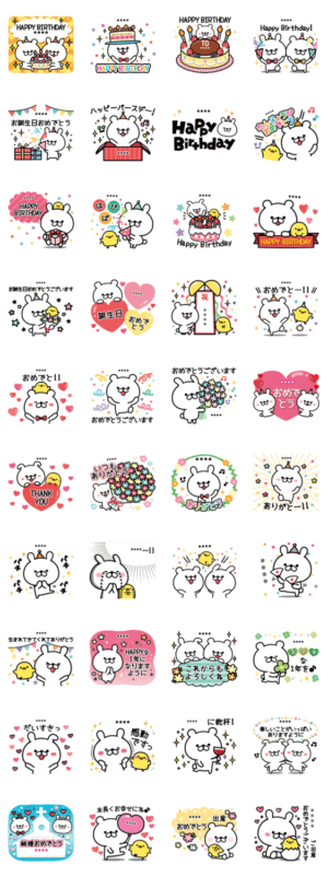 大切な人の名前や記念のことばをいれて、心のこもったオリジナルメッセージスタンプを送ろう♪ハッピーバースデー、シンプル、くま、うさぎ、ひよこ、動物、結婚・出産祝い