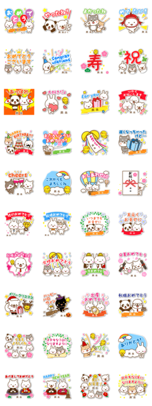 岡田/おかだ様専用★お祝い動物フレンズ名前入り!ねこ,犬,白兎,熊猫等のイベント挨拶!誕生日おめでとう,新年,クリスマス,ハロウィーン,出産,結婚,就職,合格,入学,卒業他お名前入りスタンプ専用★アイシスデザイン株式会社 より発売