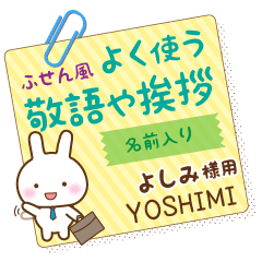 よしみ様用うさぎ丁寧敬語挨拶ふせん風[ヨシミ/好美/芳美/吉見/良美/義実/佳実]スタンプ内容/感謝/有難う/お祝い/お誕生日おめでとう/ごめんなさい/承知しました/御意お名前入りスタンプ専用★アイシスデザイン株式会社 より発売