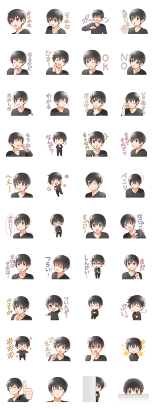 黒髪の男の子スタンプの第2弾です。nonbiri より発売