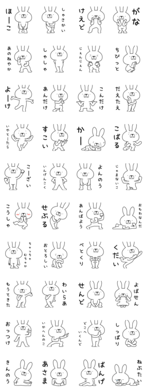 いろんな方言をつかううさぎのスタンプ高浜弁編3(福井・石川・新潟・富山・北陸地方、そうでない方も使えるかも。また違う県verに似た方言が見つかるかも)