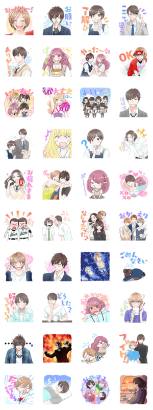 河原和音「先生!」「高校デビュー」「青空エール」「素敵な彼氏」のキャラが集合した胸キュンスタンプが登場!このスタンプだけの描きおろしイラストもあるよ♪