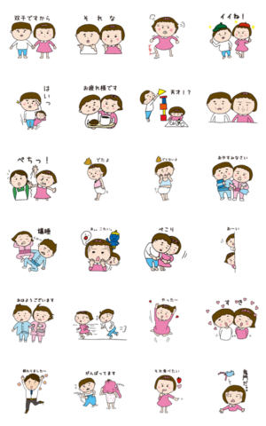 双子のよっちゃんとちいちゃんの日常 スタンプ画像一覧
