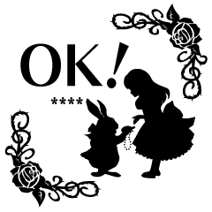 アリスのモノトーンシンプルシルエット。大人女子向けのオシャレなカスタムスタンプです。購入後もテキスト変更可能。購入前にプレビューでデザインを確認してください