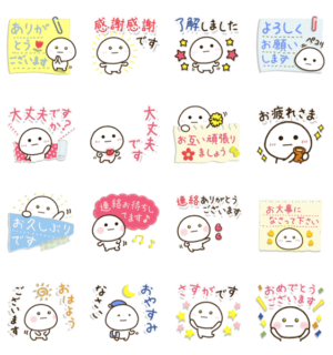 日常で良く使う言葉を、大きな文字で気持ちが伝わるように工夫しました。初心者やシニアの方が迷わず使える16個のスタンプです。