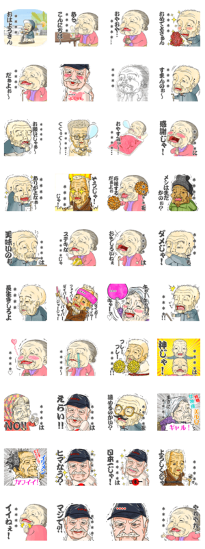 プルプルおばあちゃん、プルプルおじいちゃん達のカスタムスタンプです。