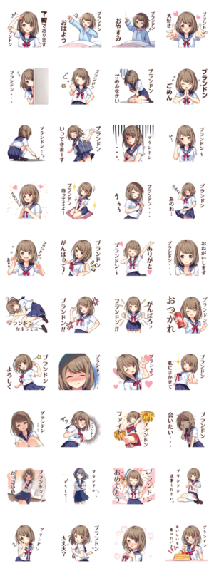 大好きな【ブランドン】に送るLOVEらぁぶスタンプ。制服JKが「ブランドン」に呼びかけるよ。/ラブラブ/女子高生/友達/日常会話/【illustrated by なめたけのこ】イッレ・コスヤ より発売