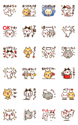 毎日使う言葉やポーズがギュッと詰まった、かわいいにゃんこ達の動くスタンプです。 (ねこの缶詰め・第16弾)