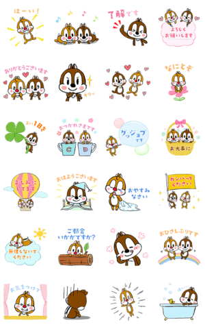 チップとデールの動く敬語スタンプです。お友達はもちろん目上の方にも送りやすいスタンプです!