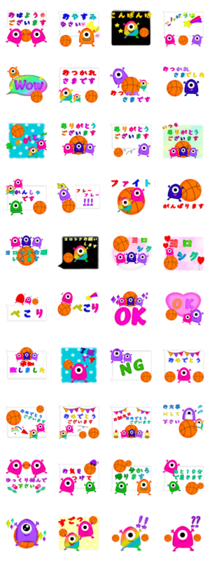 モンスターカラフル♡バスケットボール応援 スタンプ画像一覧