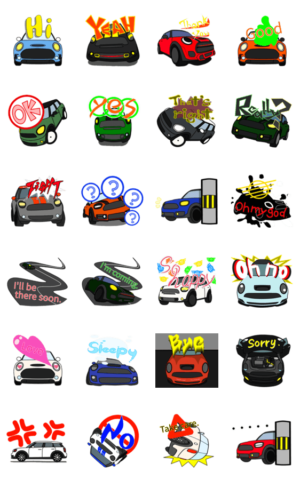 ミニサイズで可愛い車のスタンプです。 日常使う英語で使いやすい。普段の会話で使えます。ミニクロ より発売