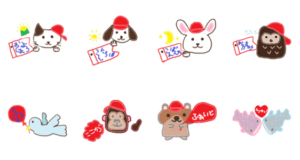 赤い鯉のぼりや赤い風船、赤い心であいさつする動物たち。和やかな気分になる優しいクレヨンタッチ!じょに工房 より発売