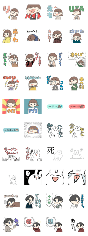 外ハネヘアーの女の子と仲間たちのそれなりに使える気がするスタンプです!にこにこ!むい より発売
