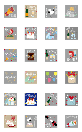 開くとお祝いや喜びのメッセージ スタンプ画像一覧