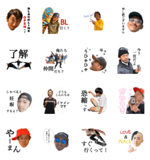 スケートボード大好きBLACKLINEによりオーナーとライダーとライダーみたいな人達のスタンプです。