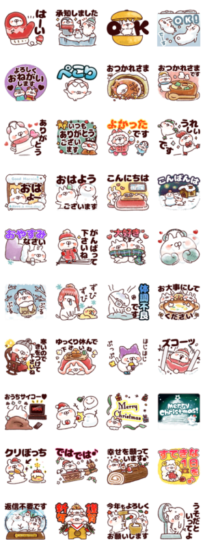 ねことうさぎの名前スタンプシリーズ/デカ文字/大きい文字で見やすい/クリスマス/お正月/スタンプで年賀状/こたつ/サンタ/雪だるま/体調不良/風邪/気遣い/冬。山田まぽん作