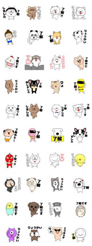 うさぎ・いぬ・くま・たぬき・ねこ・ももレンジャーなど40種類のキャラクター40個全部了解のスタンプです。かずみ より発売