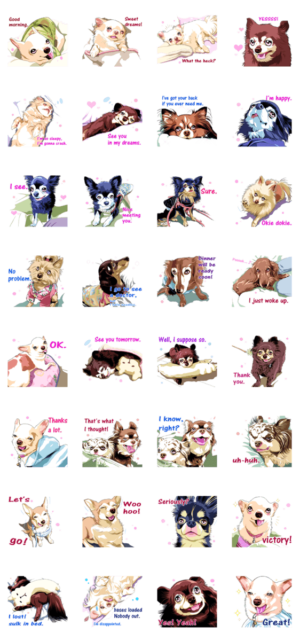 オリジナル保護犬絵本より、 似顔絵風。 このワン\'sママ達の利用頻度の高い言葉で構成。 (プロ野球女子要素が多分に含まれてます。) [英語翻訳版]