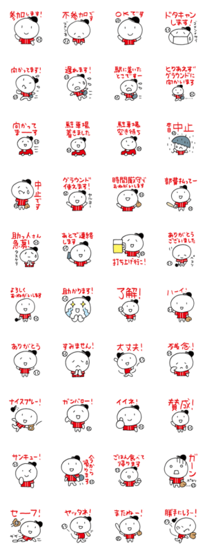使える草野球 黒/赤/白 スタンプ画像一覧