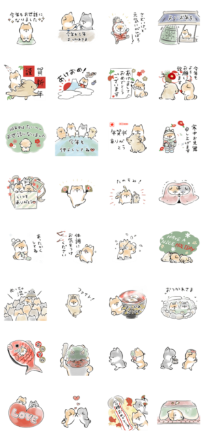 ほんわかしばいぬ<亥年のお正月> スタンプ画像一覧