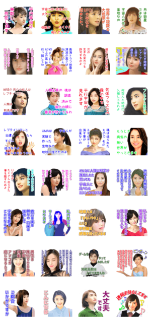 UFO、宇宙、未来の知識を持つ未来人女性が いろいろコメントする高度な哲学スタンプです。エイリアン・グレイ より発売