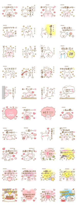 おもちうさぎシリーズ♪カスタムスタンプ第2弾は、相手の名前を入れるスタンプ!誰でも名前を言われると嬉しい♡名入りで好意や感謝を伝えましょう♡(6文字まで可)