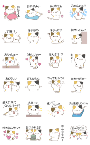 福井弁&北陸弁を話す三毛猫のミケ吉とみけまるのシンプルで大人可愛いスタンプ!つきしろ より発売