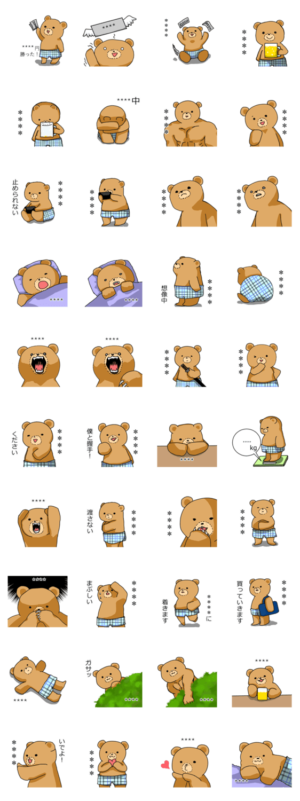 40代 男性の熊です。 基本的にトランクスです。 髭は濃いめ、ビールが好きです。※ 1番目と2番目のスタンプは文字だと4文字までしか入らないので数字推奨です。ゆみ助 より発売