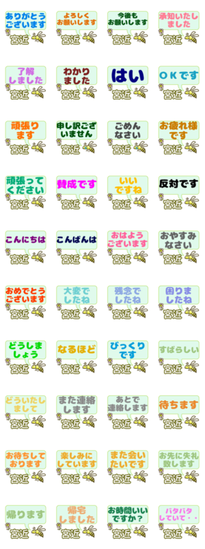 友達・家族・上司・先輩・同僚・後輩 日常会話・報連相報告・連絡・相談用 敬語・丁寧 大人 大きいサイズ 働きバチ宮近「みやちか」さん専用 名前苗字