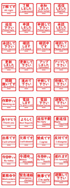 自分の名前をカスタムして相手や上司に連絡,返信.ハンコ形式で少しでも仕事の効率化を!毎日のビジネスの日常や事務的な連絡など英語も含め色々と使える判子.7文字まで.