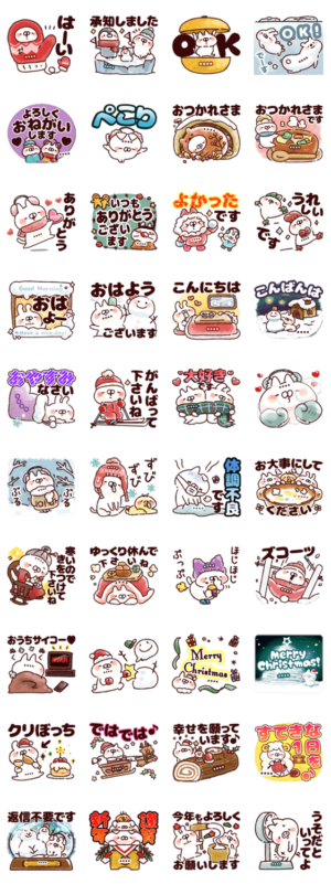 ねことうさぎの名前スタンプシリーズ/デカ文字/大きい文字で見やすい/クリスマス/お正月/スタンプで年賀状/こたつ/サンタ/雪だるま/体調不良/風邪/気遣い/冬。山田まぽん作山田まぽん/名前スタンプ より発売