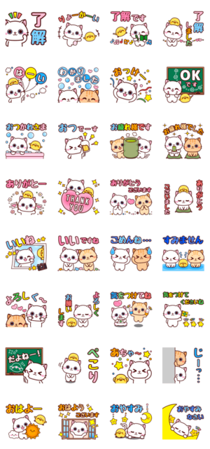 かわいい癒し系な猫とヒヨコの、毎日よく使う返信セット♪『友達や家族など親しい人に返信』『目上の人や仕事関係に返信』など、様々なLINEトークに便利です!