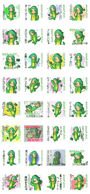 ゆっけ。が贈る【そらちゃんパパ】用名前スタンプ15です。《きぐるみじょし》04「バブルなヘビねーさん」のスタンプです。