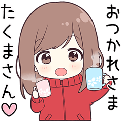【たくまさん】に送る専用のジャージちゃんスタンプ第1弾です。大好きな「たくまさん」に呼びかけます。