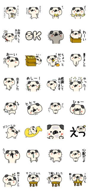 2個目です、ゆるくてかわいいパグ犬です。普段使いにどうぞ。絵文字もあります。type-E より発売