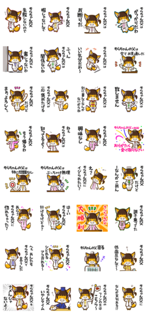 ゆっけ。が贈る【そらちゃんの父】用名前スタンプ06です。《ゆっけ。のアニぱ!》06「きつねのてんくー姉妹・姉てんこ」です。