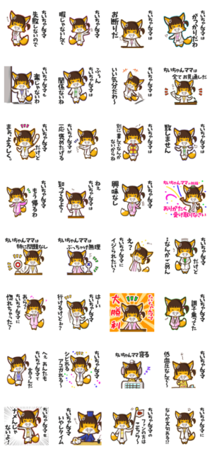 ゆっけ。が贈る【ちいちゃんママ】用名前スタンプ06です。《ゆっけ。のアニぱ!》06「きつねのてんくー姉妹・姉てんこ」です。